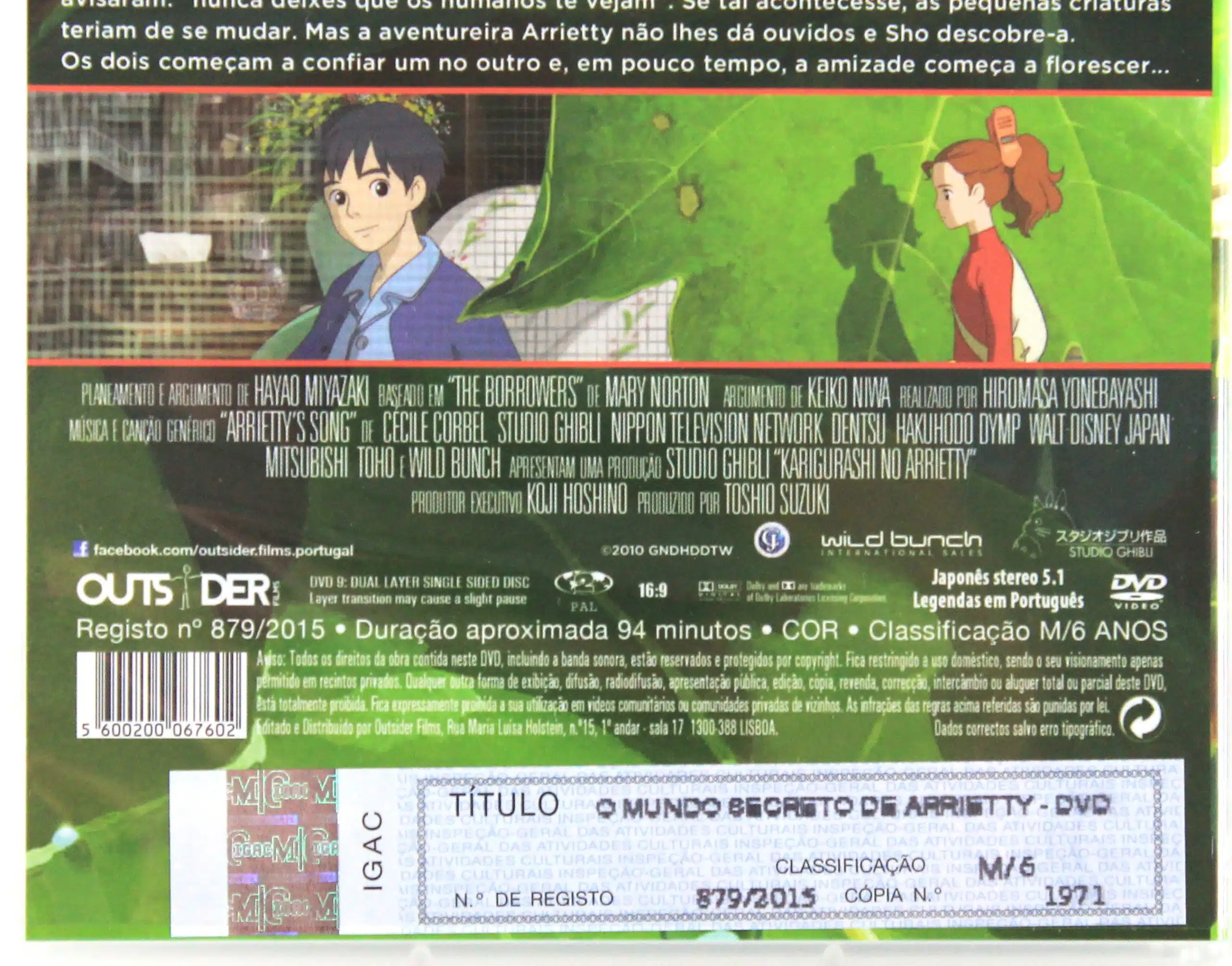 This is a Portuguese DVD, released in 16th December 2015, for the film “The Secret World of Arrietty” (借りぐらしのアリエッティ).